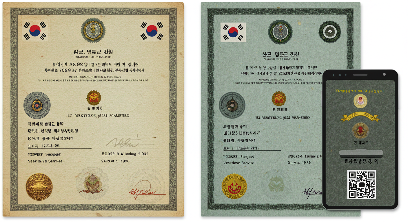 전역증은 단순한 종이 한 장이 아닌, 여러분의 소중한 군 복무를 증명하는 공식 문서입니다.