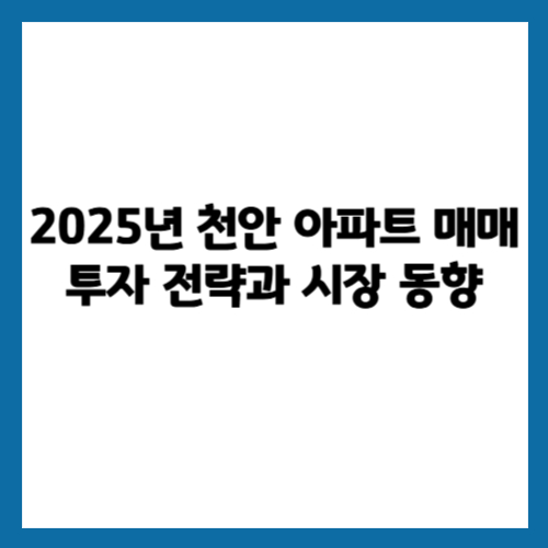 2025년 이후 천안 아파트 매매 시장은 어떻게 될까요?