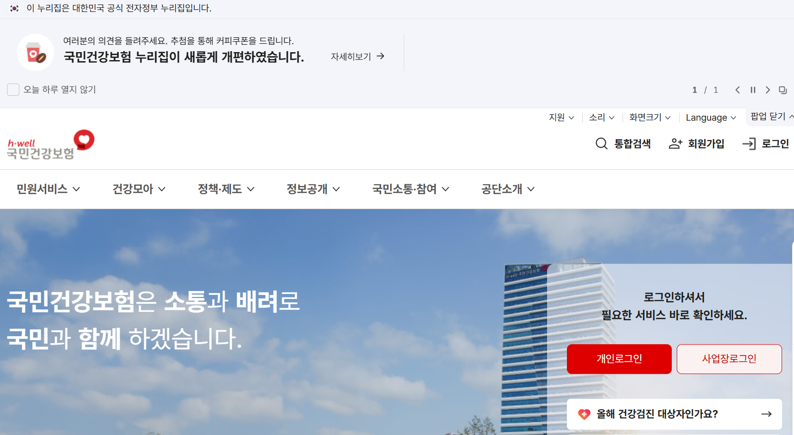 1️⃣ 국민건강보험공단 홈페이지 접속