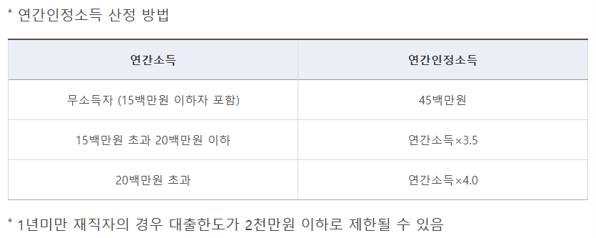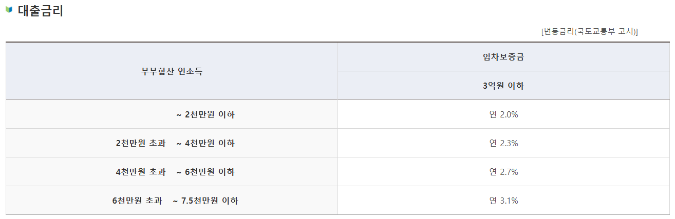 | 대출 금리 | 연 2.0%~3.1% | 연 2.3%~3.3% |