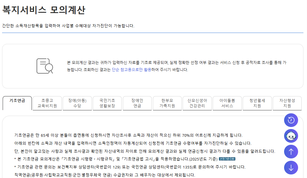 기초연금 모의 계산하기