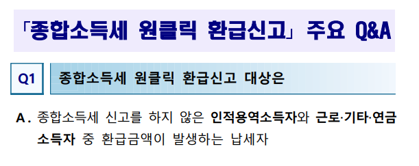 - 환급 대상은 ‘인적용역’ 소득자, 자영업자 등