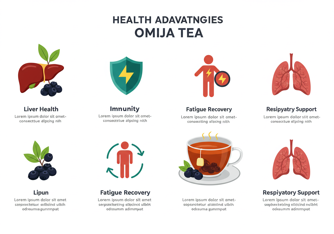 오미자에는 슈잔드린(Schizandrin) 성분이 있어 몸의 피로감을 줄이고 활력을 높여줍니다. 실제로 오미자차를 꾸준히 마신 집단에서 피로도 점수가 낮아졌다는 국내 연구도 있습니다.