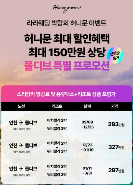 신혼여행 패키지는 특별 할인가로 제공되니 놓치지 마세요!