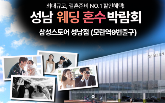 - 성남 웨딩혼수 웨딩 박람회 : 2025.3.01(토)-02(일) (삼성스토어 성남점/모란역9번출구)